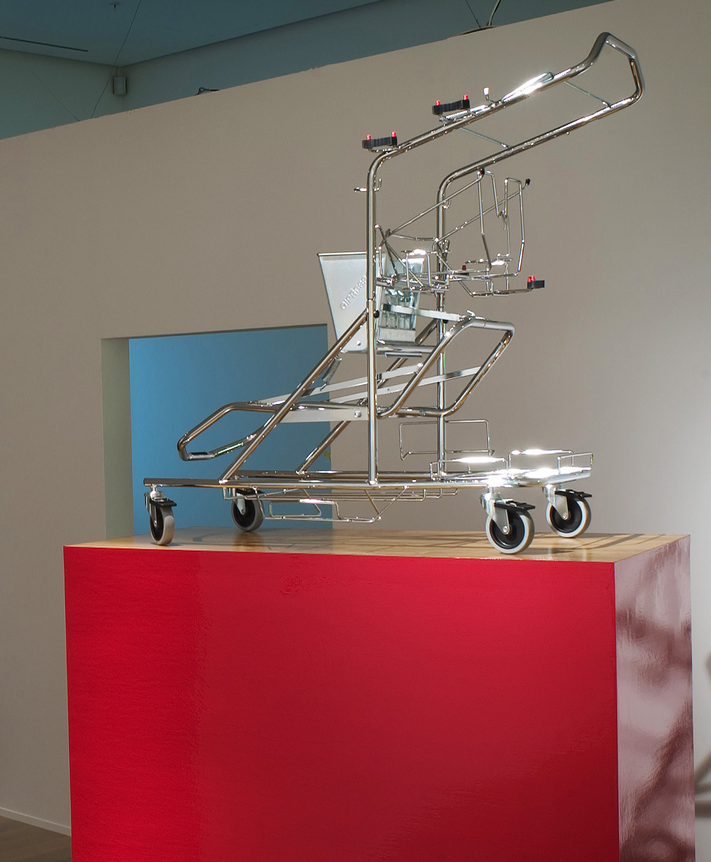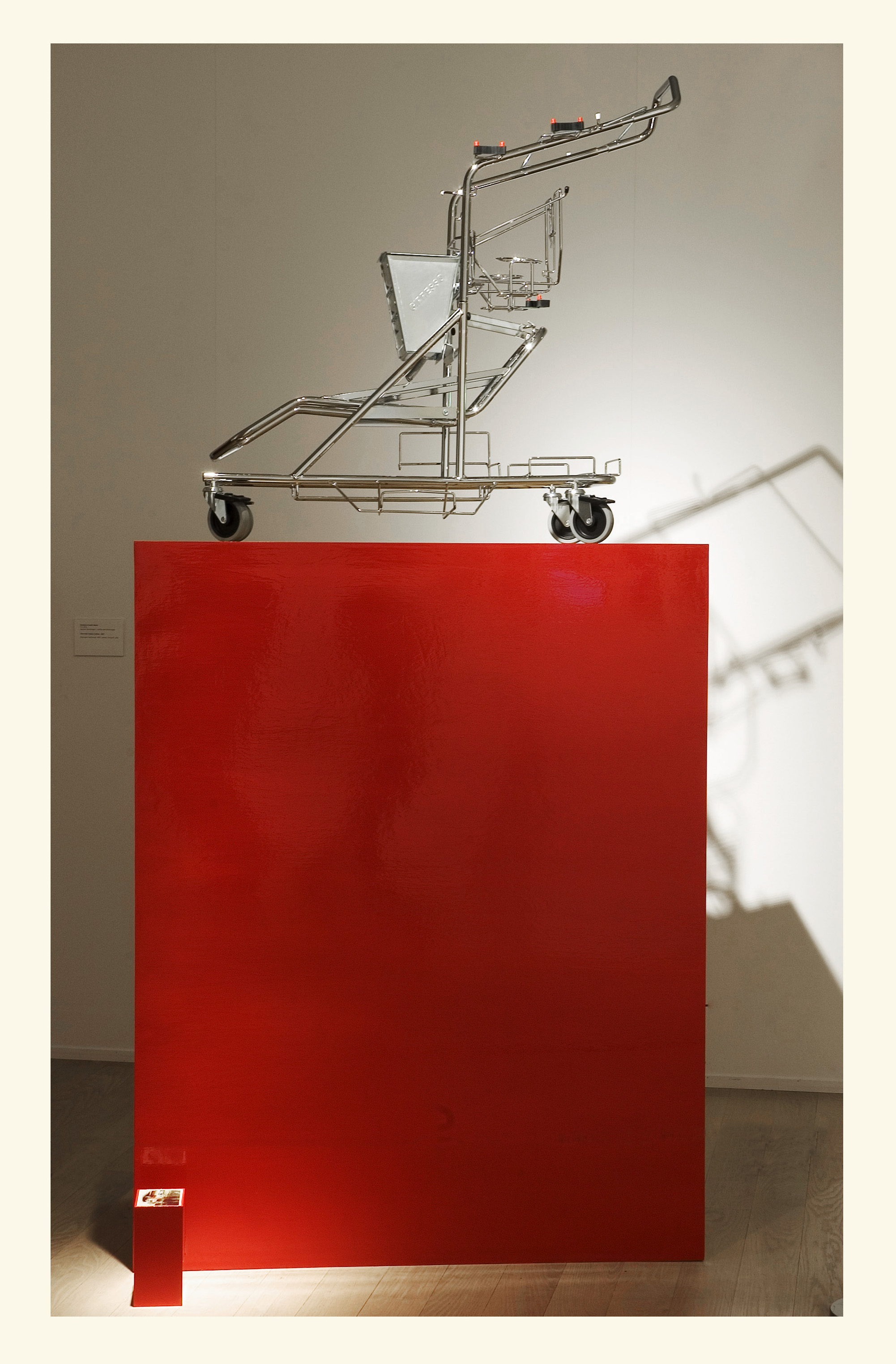 Chevrolet Impala Custom, 1997, installation, readymade, cleaning wagon, parquett floor, high-gloss red podium and photography